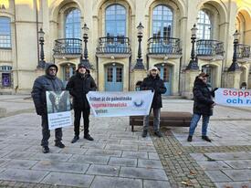 وقفة تضامنية مع غزة أمام محطة قطارات مدينة لاندسكرونا/ السويد
