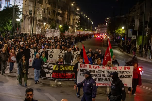 تظاهرة حاشدة في أثينا تنديداً بالحرب على فلسطين ولبنان وإيران