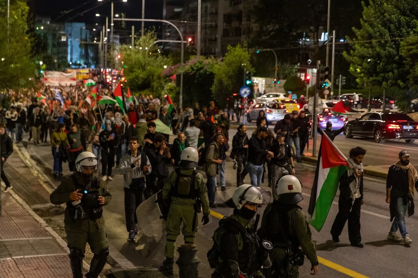 الجدير بالذكر ان قوى مكافحة الشغب اليونانية ولاول مرة قامت بالاعتداء على المتظاهرين بلا سبب بعد انتهاء التظاهرة التي مرت امام السفارة الامريكية وصولا لسفارة الصهاينة، استجابة لتوجيهات سفارة الصهاينة لقطع الطريق امام حركة التضامن التي لم تهدأ طيلة العامين من العدوان السافر ضد شعبنا، والتي استطاعت ان تطال شرائح اجتماعية هامة تجلت، باعتماد السابع من اكتوبر كيوم تضامن عم غالبية المدن اليونانية، واستطاعت بتواصلها بالاسهام بعزل اسرائيل امام غالبية الشعب اليوناني.