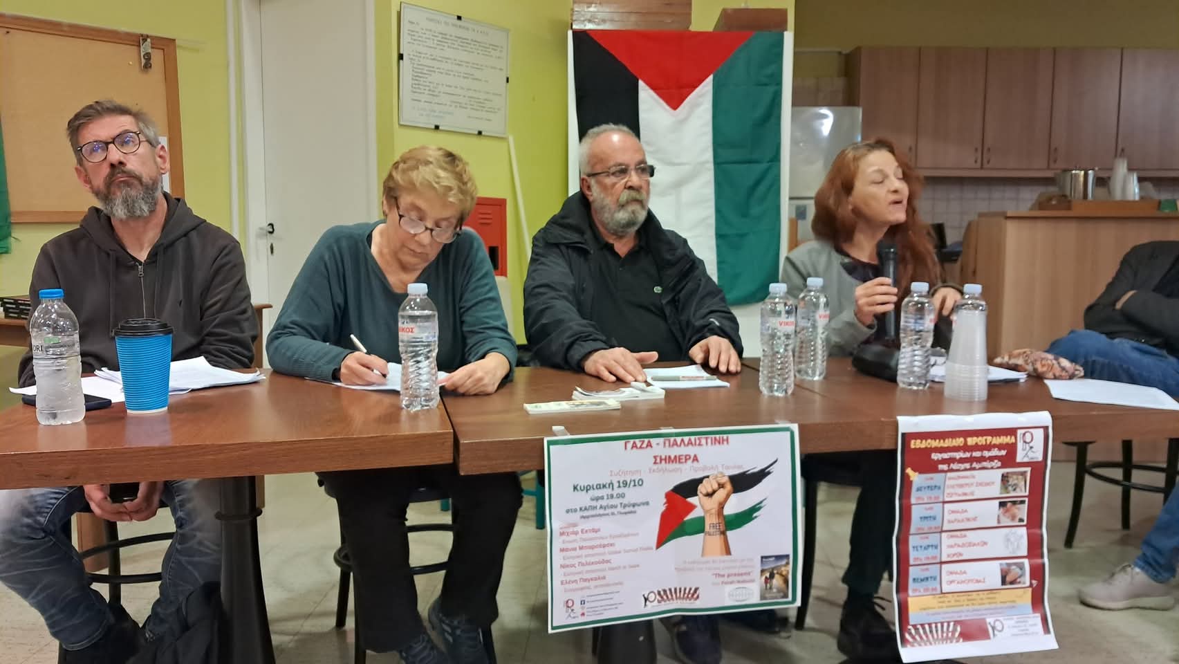 تحدث في الندوة كل من الرفيق مهيار القطامي ممثلاً عن اتحاد العمال والشغيلة الفلسطينيين، والرفيقة مانيا بارسيفسكي من أسطول التضامن، والرفيق نيكوس بيلوكيذيس من مجموعة المسيرة إلى غزة، إلى جانب الصحفية اليني بانجاليا، بحضور جمع من أصدقاء فلسطين والمتضامنين من مختلف المدن اليونانية.