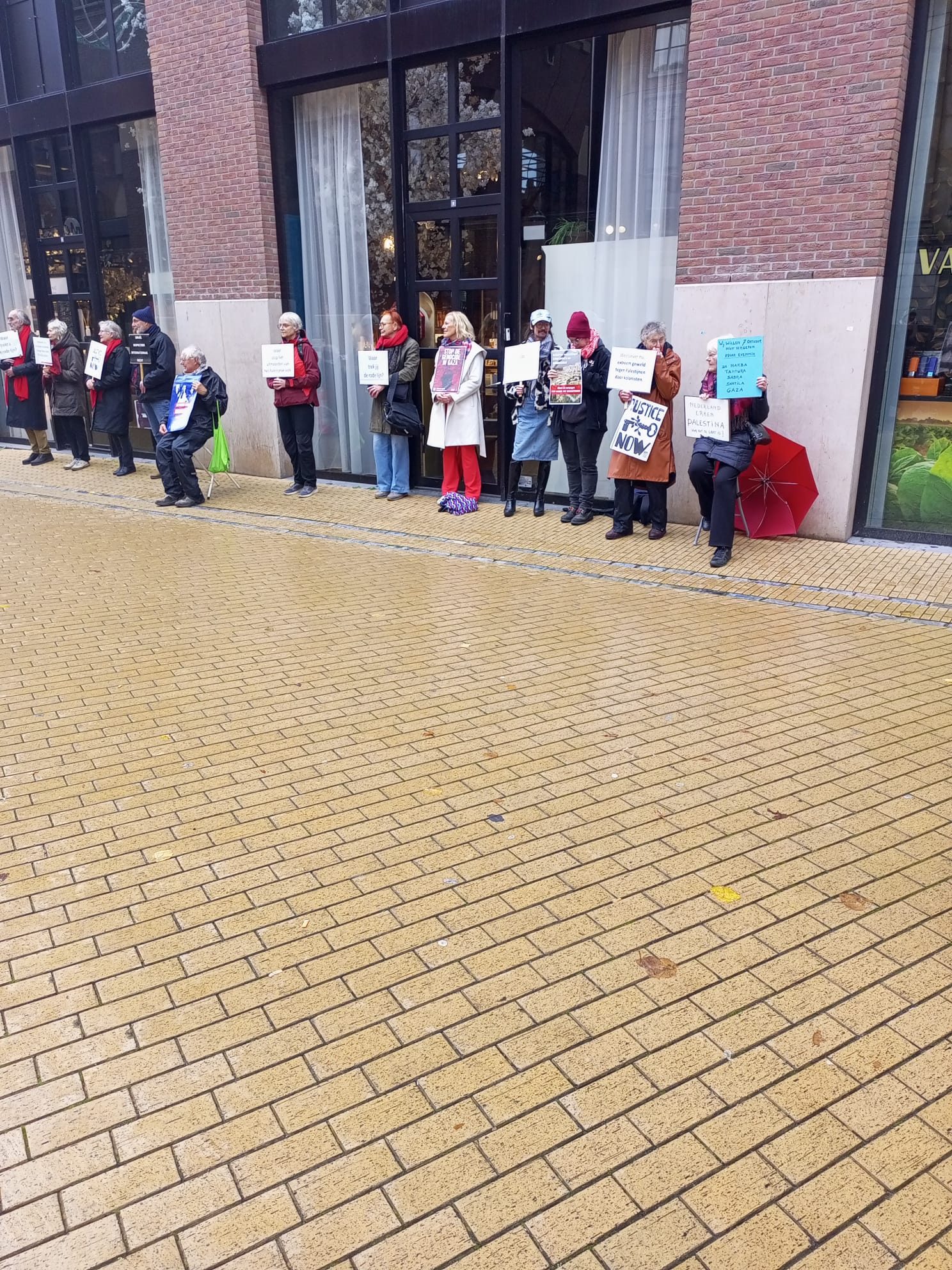 التجمع الديمقراطي الفلسطيني في هولندا يشارك مع متضامنين هولنديين بوقفة تضامن مع الشعب الفلسطيني في سنتروم مدينة خرونغين شمال هولندا، وتنديدا بجرائم الاحتلال الإسرائيلي ورفع المشاركون العلم الفلسطيني ولافتات تطالب بمحاكمة مجرمي الحرب من قادة الاحتلال الاسرائيلي الذين ارتكبوا المجازر والابادة الجماعية بحق الشعب الفلسطيني وخاصة الاطفال والنساء والشيوخ، مطالبين بالحريه لفلسطين وبإنهاء الاحتلال الاسرائيلي للاراضي الفلسطينية، مؤكدين على مواصلة تحركات التصامن مع الشعب الفلسطيني في غزة والضفة والقدس، حتى يقف العدوان ويفك الحصار عن غزة، واعطاء الشعب الفلسطيني حق تقرير المصير على أرض وطنه بإقامة دولته المستقلة وعاصمتها القدس .