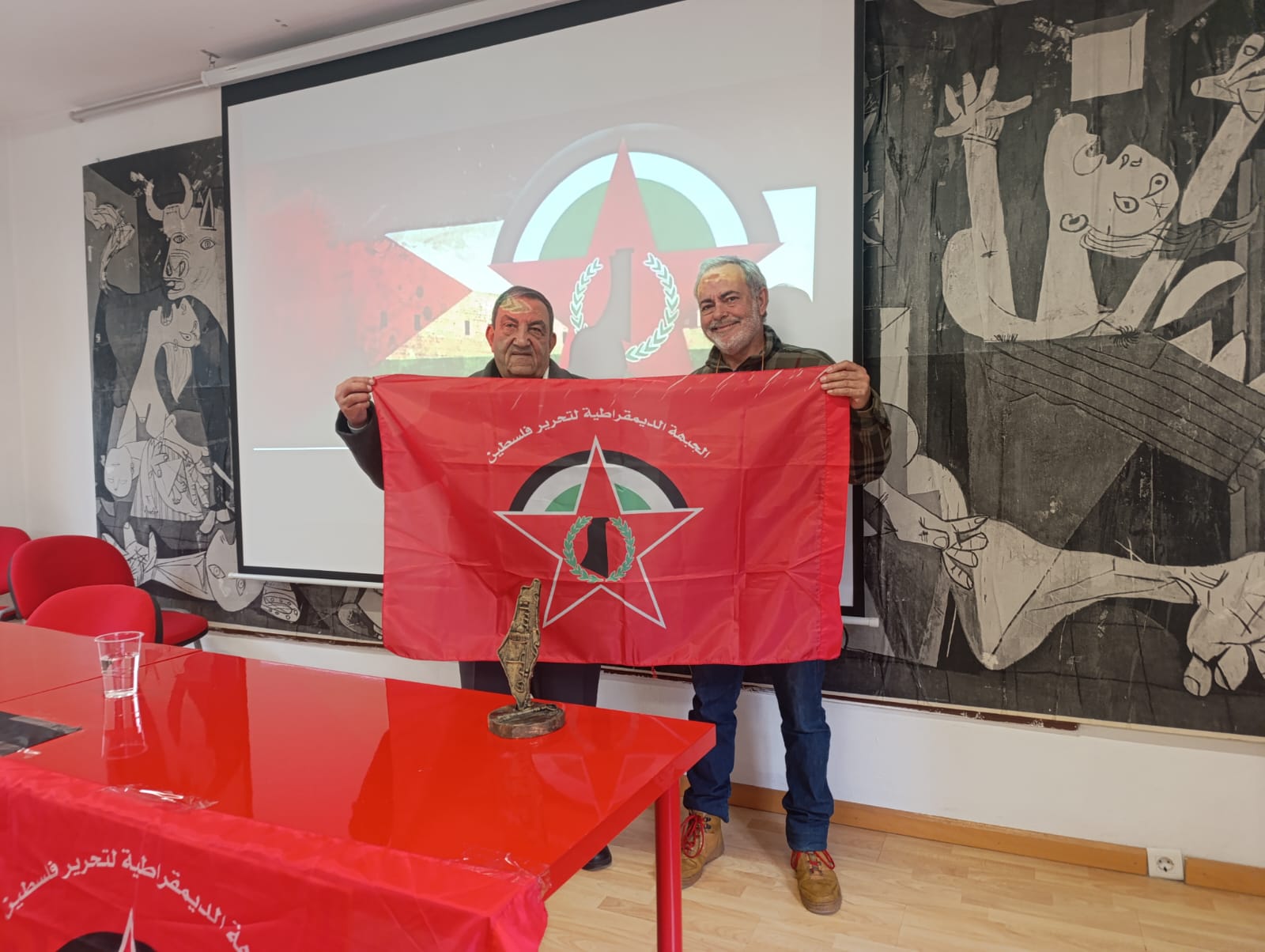 جرى تكريم عدد من النشطاء البارزين في أوساط الجالية الفلسطينية في إسبانيا و رؤساء جمعيات ساهمت في تعزيز صمود أبناء شعبنا الفلسطيني في مواجهة الاحتلال الصهيوني، تقديراً لعطائهم وجهودهم في خدمة القضية الفلسطينية، وقد قام الرفيق أبو بشارعضو المكتب السياسي للجبهة الديمقراطية لتحرير فلسطين بتقديم خارطة فلسطين للمكرّمين، تعبيراً عن التقدير العميق لجهودهم ومواقفهم الداعمة لنضال الشعب الفلسطيني.