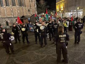 في ساحة المسرح في مدينة باد جوديس بيرغ الالمانية، تجمع يوم السبت الموافق 31/1/2026 المتضامنين الالمان والعرب والفلسطينيين في يوم التضامن العالمي مع اسرى الشعب الفلسطيني لكشف ما تقوم به اسرائيل من ممارسات وحشية وهمجية تجاه المعتقلات والمعتقلين السياسيين الفلسطينيين في زنازين الجستابو الاسرائيلية، وبعد سماع صوت الطفلة هند رجب وهي تطالب الاستغاثة وحديث ممثلي الحراكات التضامنية المطالبة بالضغط على اسرائيل ومقاطعتها لوقف ممارساتها الاجرامية من ضرب واغتصاب وحرمان الاسرى من الطعام والزيارات العائلية والحبس الانفرادي، وطالبت المؤسسات العالمية بالتدخل لإنقاذ اسرى الحرية .