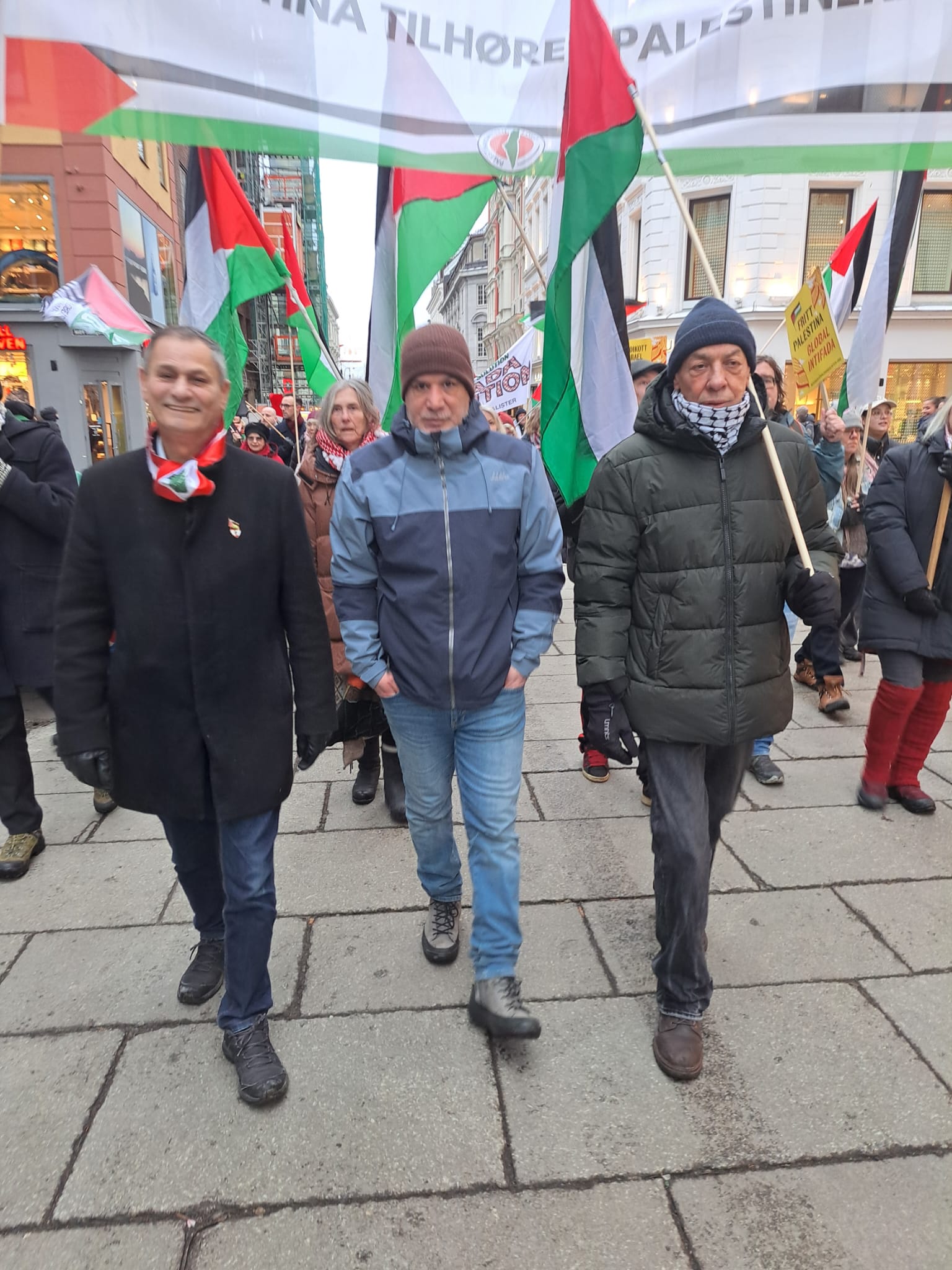 - صدحت الحناجر بهتافات الحرية، مؤكدة على تضامن الشعب النرويجي والمؤسسات المدنية مع نضال الفلسطينيين.