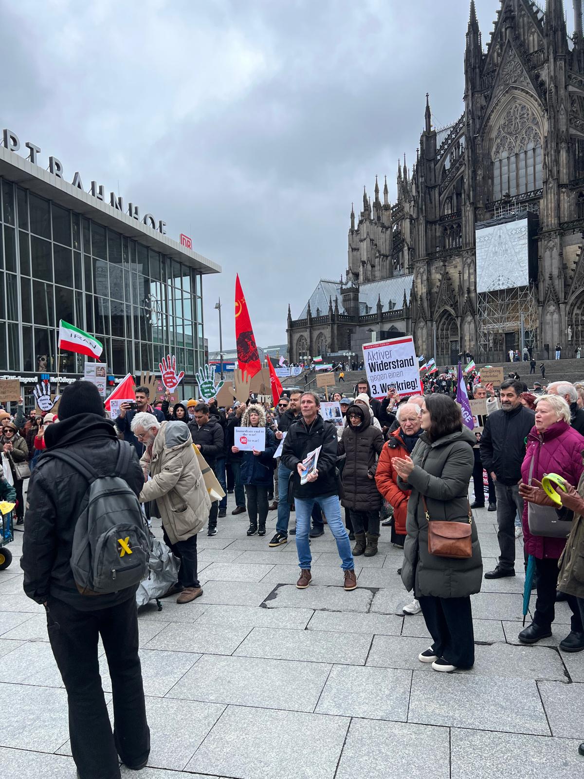 شهدت مدينة كولون يوم 14 مارس 2026 تظاهرة واسعة ضد الحرب الأمريكية الإسرائيلية على إيران ولبنان وفلسطين، حيث تجمع المشاركون من منظمات متعددة وأنصار السلام. جاءت هذه الفعالية بمشاركة الجالية الفلسطينية ومجموعة من الأحزاب السياسية، بما في ذلك حزب اليسار وحزب ميرا والحزب الماركسي اللينيني.