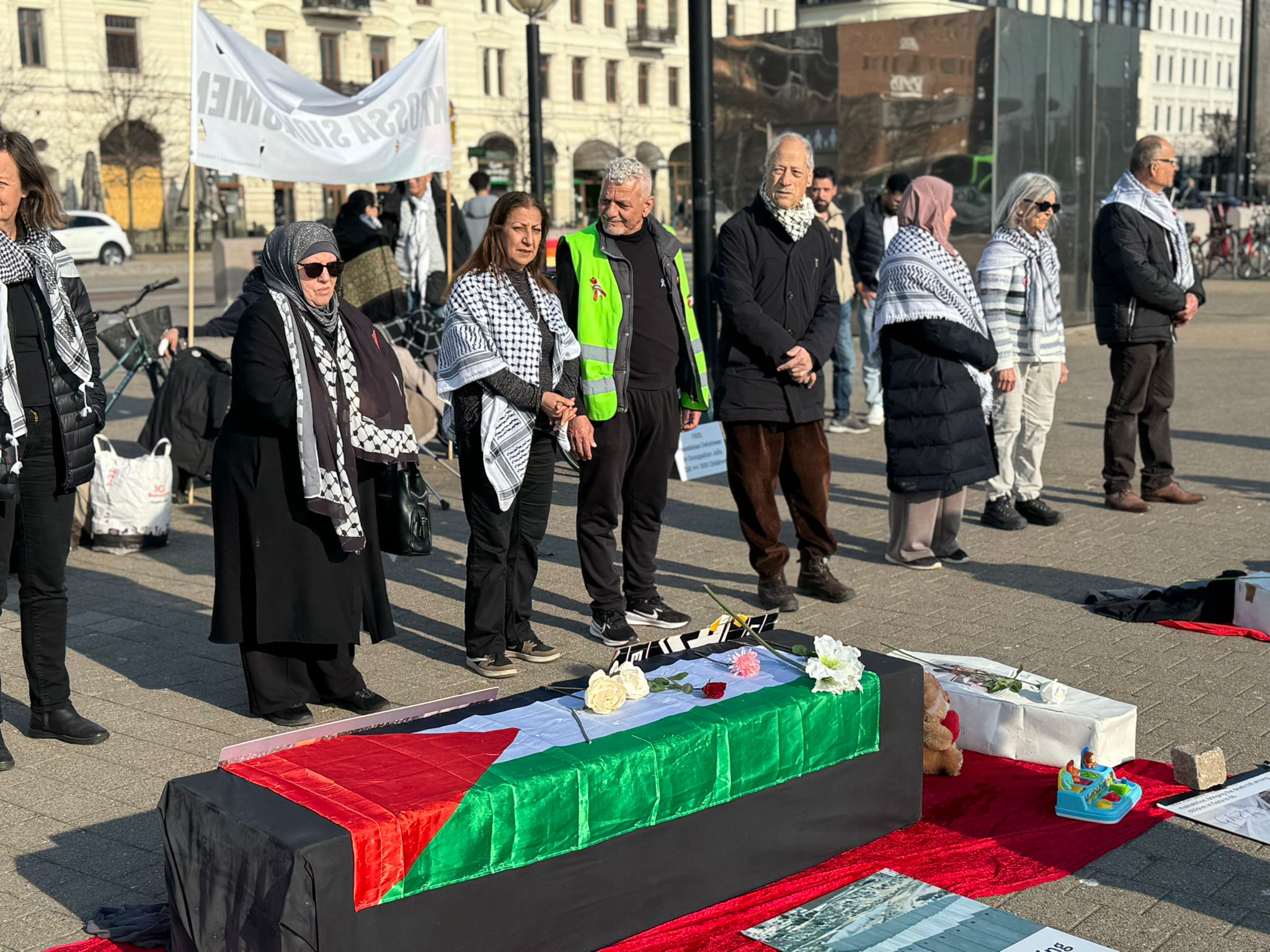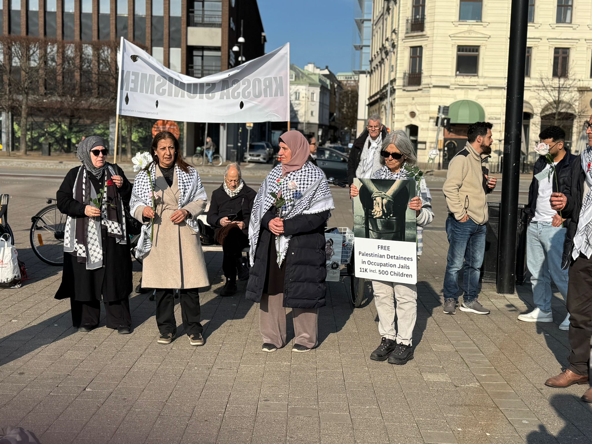 واطلقت في الوقفة الهتافات ورفعت الأعلام الفلسطينية كما صدحت بأغنيات سويدية تضامنية مع غزة فلسطين .وسار المشاركون حول مجسمات لأطفال شهداء من غزة ووضعوا ورود عليها .وتم في الوقفة إلقاء كلمات من المجموعات المتضامنة مع فلسطين . والتي نددت باستمرار جرائم الاحتلال و الاعتداءات وعمليات القتل في غزة والضفة وبتغطية اميريكية . وطالبوا بتحرك جاد لتطبيق المرحلة الاولى والشروع بالمرحلة الثانية من القرار 2803 وبما يؤدي لانسحاب قوات الاحتلال والشروع بالاعمار .وأدانوا كذلك مواصلة الاحتلال لعمليات القتل والاستيطان في الضفة ، كما شددت الكلمات على ضرورة اتخاذ أوروبا لخطوات عملية في مواجهة الجرائم الاسرائيلية من خلال فرض العقوبات على حكومة نتنياهو الاجرامية.
