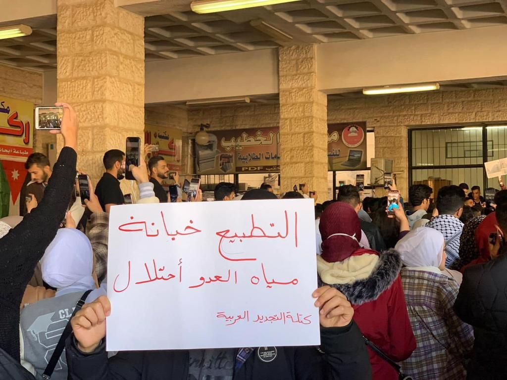 طلاب الجامعات الأردنية ينتفضون ضد اتفاقية الماء مقابل الكهرباء مع إسرائيل