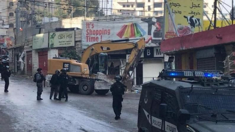 الاحتلال يخطر بهدم 6 محلات ويصادر جرافة جنوب جنين