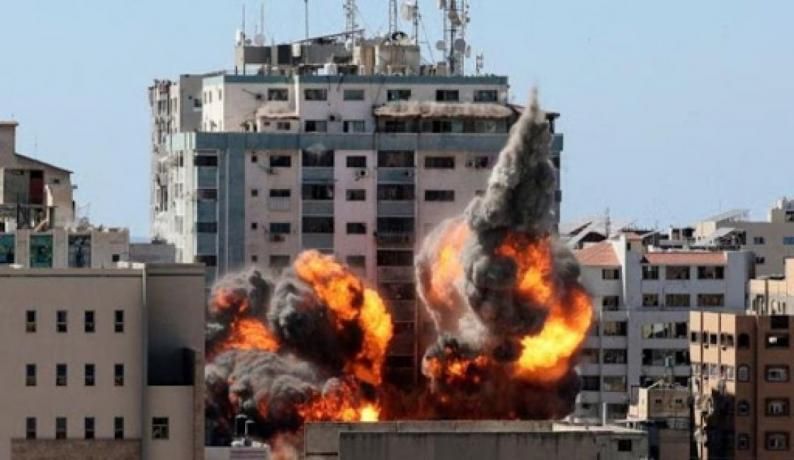 طائرات الاحتلال تستهدف برج الأندلس في منطقة الكرامة بغزة