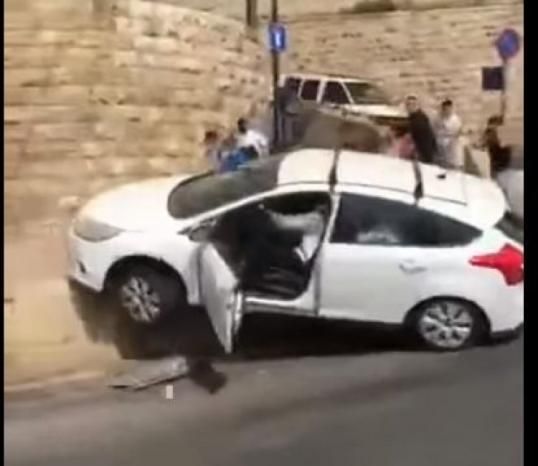 مستوطن يدعس المصلين الخارجين من المسجد الأقصى المبارك