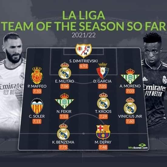 موقع WHOSCORED للإحصائيات : ريال مدريد يسيطر على أغلب جوائز الليغا هذا الموسم بعد نهاية النصف الأول