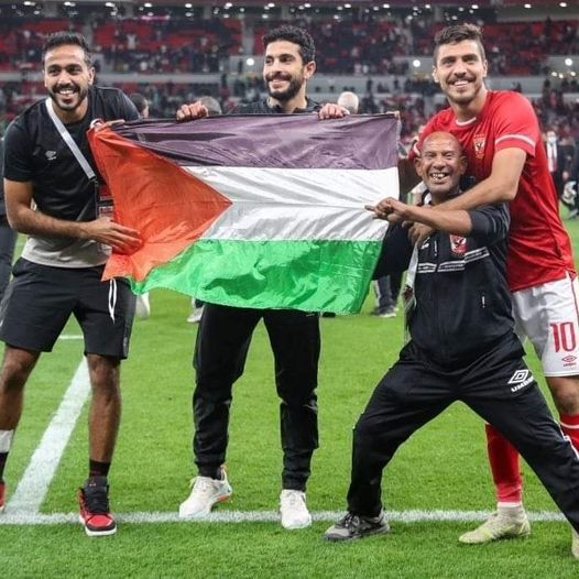 لاعبا الأهلي المصري يرفعان علم فلسطين في تتويج كأس السوبر الافريقي
