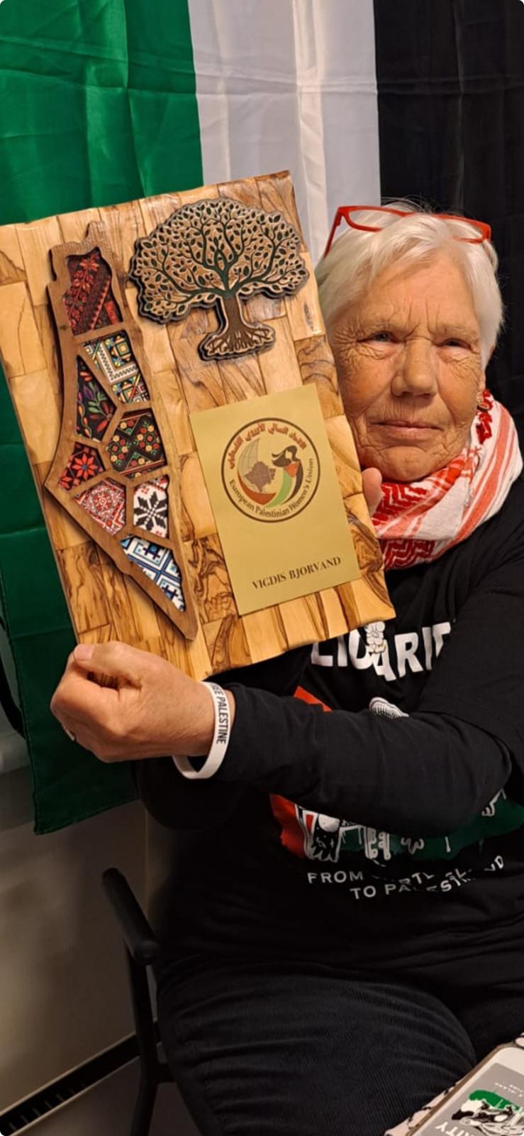 الاتحاد النسائي الأوروبي الفلسطيني في النرويج يكرم الناشطة النرويجية Vigdis Bjorvand