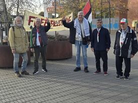 وقفة تضامن مع غزة أمام محطة القطارات في لاندسكرونا/ السويد